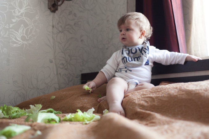 у нас вчера краски пальчиковые таааак пошли, что пришлось прекратить рисование, просто сидел и ел, а капусту подавно будет грызть, но она хоть полезная)))))))