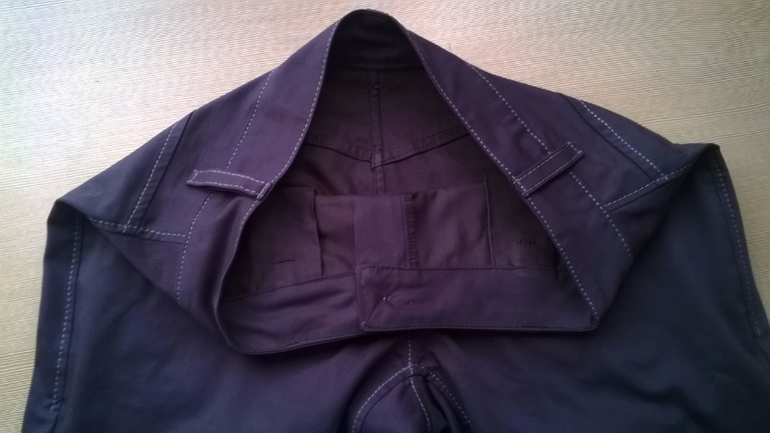 швы запошивочные, т.е. скрыты срезы, оверлоком обработка боковых швов, пояс выкроен по дуге, сидит по фигуре, по прямой если скроить прилегания по фигуре такого не будет, мешковина кармана выполнена из цельной детали
