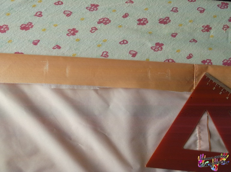 Теперь нужно эти петли прометать через 2 слоя ткани на расстоянии 1,5-2 см от сгиба. Можно на этом этапе и прорезать их.