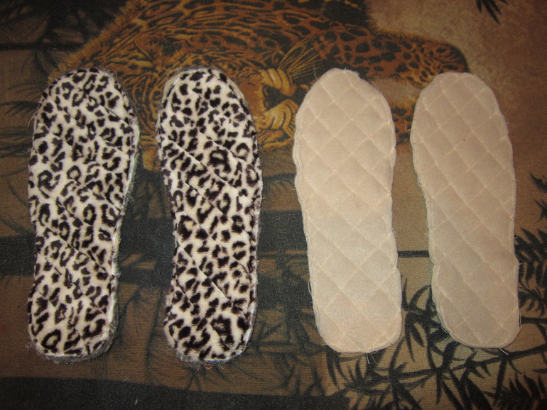две внешние стельки из велсофта.Если внешние стельки делаю из тонкого флиса, то обязательно в два слоя одного оттенка.