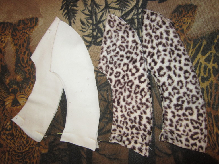 две "подковы" для внешнего тапка из велсофта. Обратите внимание если шьёте из велсофта или велюра, то обязательно надо выкраивать ворсом вверх обе детали.