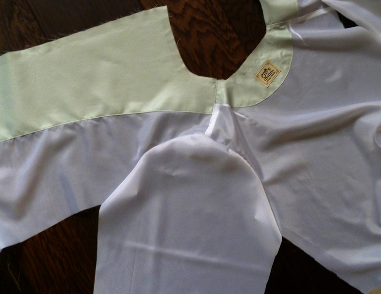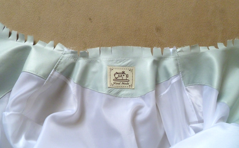 Прострочить на спинке вытачки, заутюжить в сторону середины спинки. Пришить на деталь спинки нашивку лейбл и вешалку (для вешалки я беру обычно репсовую ленточку шириной 1 см в цвет изделия).