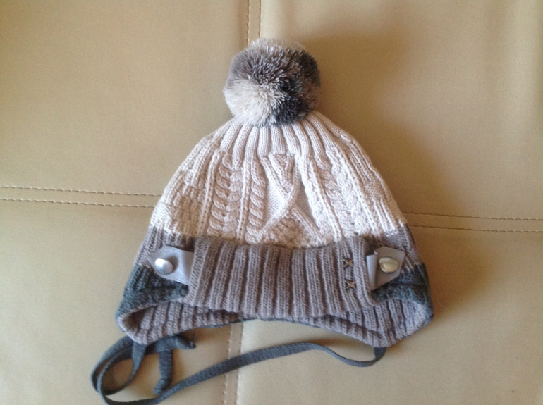 Доброе утро! Шапочка теплая, зимняя, она двойная, да. У куртки такая расцветка, что недостатков не видно. пятен на ней точно нет никаких, немного стерлась надпись, я вам сфотографирую поближе.