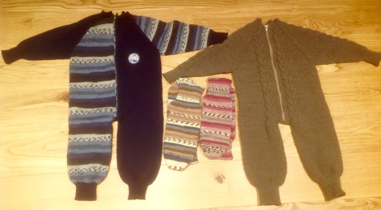 Между комбезами носки для одних из родителей, так как внуки не близнецы (разница три месяца).