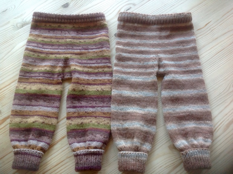 Дождь, вязать не хочется, решила показать последние вязалки внукам. Началось всё со штанишек.
