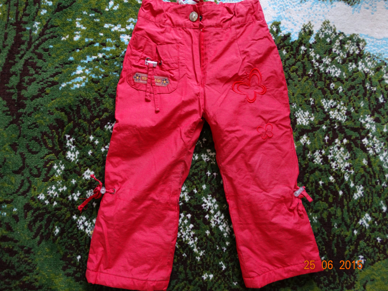 Штаны зима Yingliqi , цвет красный, 2 года 92 см, сверху непромокаемый материал, внутри флис.