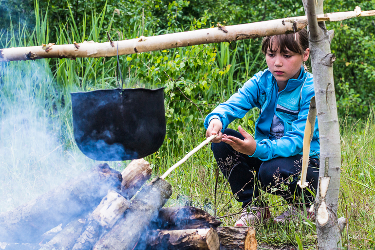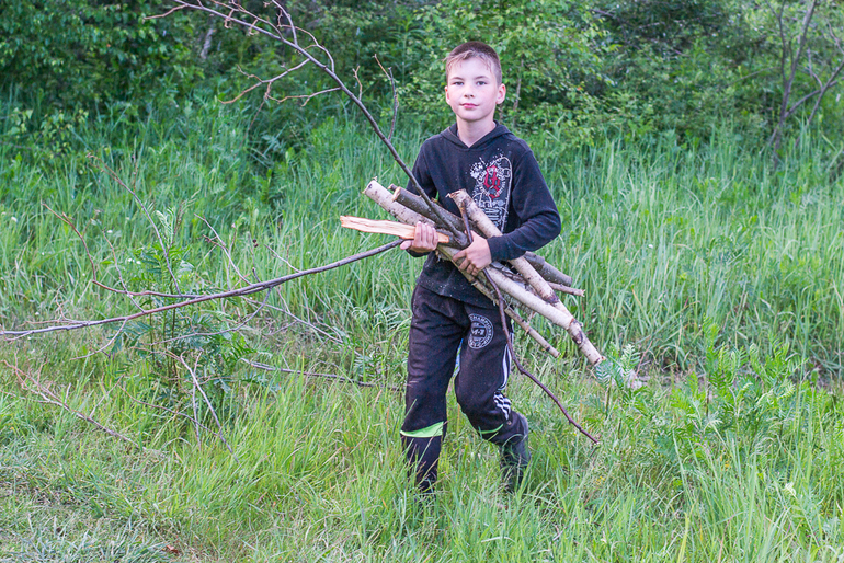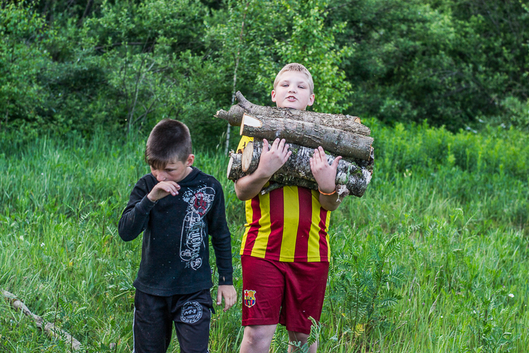 Наши малыши не только играли между собой, но и помогали взрослым поддерживать огонь