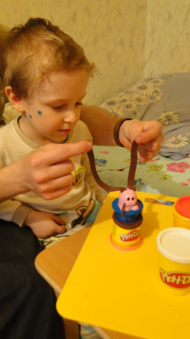 еще мозаику собираем, играет в машинки, смотрим мультики и читает мне МОЙДОДЫРА-выучил наизусть весь)
