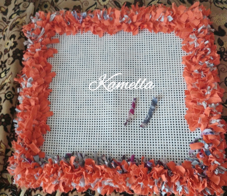 Хочу вам показать чем я ночами занята и как я делаю коврик на канве из кусочков нарезанной ткани