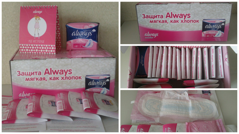 Такую возможность предоставил сайт Buzzaar и прислал на тестирование buzz-kit. В нем была пачка прокладок Always Ultra Sensitive, 19 наборов для подруг: по 2 прокладки в фирменных конвертиках, а также настольный календарь для девушек и инструкция.