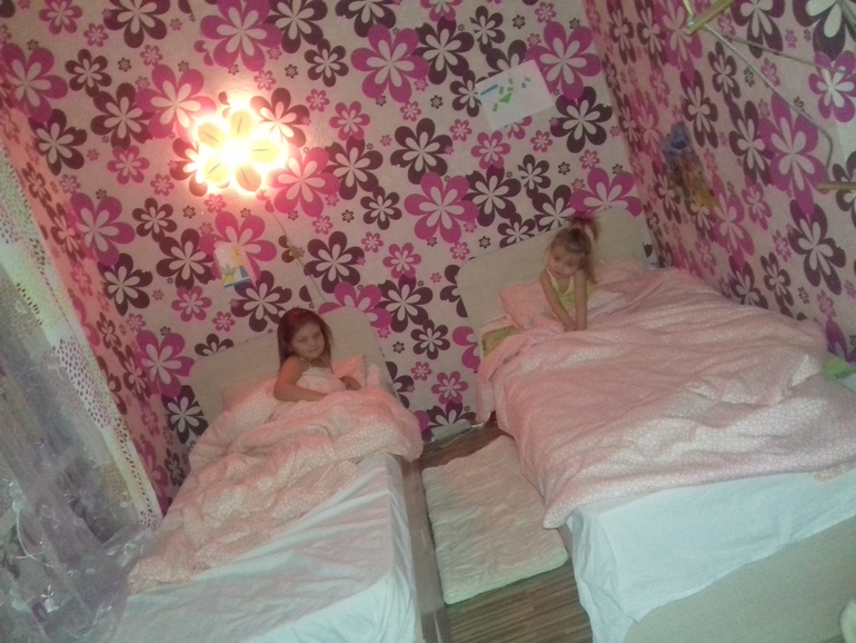 А ещё мы совсем большие от того, что уже вот как неделю переехали из маминой и папиной кровати, на свою, большую, настоящую. В детскую комнату к Катюшке.