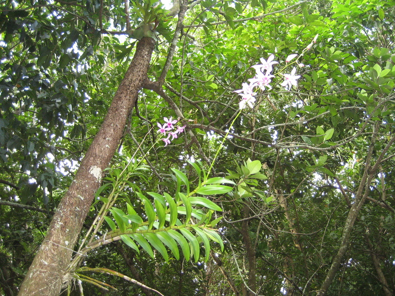 Во первых сам остров (Green island, названный по фамилии помощника капитана Кука) куда мы приплыли был небольшой, но уютный и зелёный. Мы гуляли по нему и Иришка чувствовала себя в нём как в саду у бабушки Вали в детстве. Тенистый лесок, какие-то маленькие дикие курицы, бегающие под ногами, и даже проросшие кокосовые орехи. Кстати тут мы впервые увидели, как растут настоящие орхидеи (некоторые виды) - на деревьях, оплетая ствол своими корнями и радуя глаз сразу несколькими цветками.