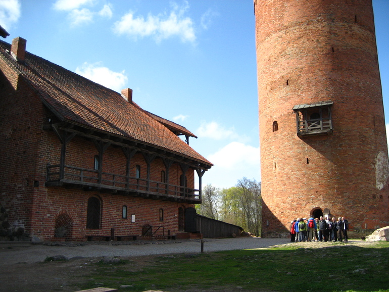 На следующий день мы решили сьездить в Турайдский замок, что по дороге в Сигулду. Это приличное такое оборонительное сооружение, принадлежавшее когда-то (где-то в веке 13м-17м) Рижскому Архиепископу, человеку важному- (как-никак правитель Риги!), почитаемому, и главное не бедному. Замок строился и надстраивался на протяжении большей части своего существования, поэтому и здания датируются разным временем. К 18-му веку замок потерял свое значение: рыцари повымерли, Рижского Архиепископа (вместе с его Архиепископством) упразднили, территория стала переходить из рук в руки, в общем началась неразбериха, и большая часть замка вообще сгорела- и никто на него особенно внимания не обращал до 70-х годов собственно 20-го века, когда начались реставрационные работы. Красивая башня и вид на окружающий лес из ее бойниц, красивые часы, деревянные мостики-балкончики, очень реалистичное подземелье, малюсенький но качественный музейчик- в общем все что душе угодно.