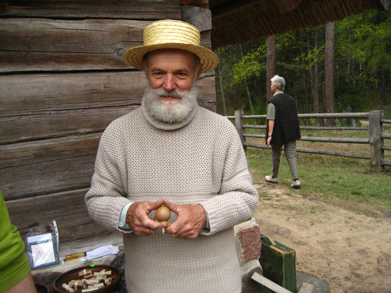 слушали пение европейских птичек, вдыхали ароматы леса в котором собственно и разбросаны постройки музея, любовались озером, общались с умельцами которые предлагали свои поделки туристам (большинство из них было одето в национальную одежду и выглядели очень колоритно)- мы купили у одного мастера по бересте сувениры для моей подруги Керри: коробочку с игрой и самые сладенькие маленькие лапоточки которые я когда-либо видела, я даже чуть не оставила их себе! А у другого мы купили самый заводной волчок мира, которым буквально можно играть в футбол и он не падает- вот оказывается какие интересные игрушки были придуманы в Латвии, а кажется так просто!
