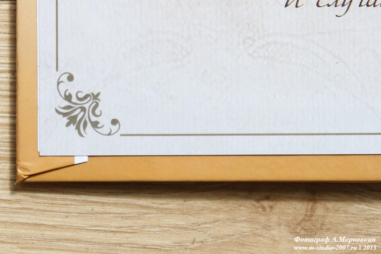 Листы бумаги, вклеенные внутри, нарезаны и приклеены криво. Более того, их размер превышает размер стандартного фото20х30, что приводит к тому, что край бумаги виден из под фотографии. И виден тем более, чем более криво он приклеен. Второй недостаток - неровная обрезка печатного листа обложки. Оставшаяся белая полоса в некоторых папках видна из под наклеенного бумажного листа. И самый главный недостаток - это плохая проклейка бумаги с внутренней стороны. Частично это объясняется тем, что пленка обложки создает по периметру выступающий ободок, который мешает при опрессовке получить достаточное давление по всей поверхности. В процессе сборки мне пришлось распотрошить одну папку, и в ней были видны непроклеи как бумаги папки, так и фото к бумаге. Все это чревато воздушными пузырями. Надо отметить, что первоначально, планировалось закупить папки другого производителя, бумажно - виниловые. Бардовые с колокольчиком. Но они к сожалению закончились у продавцов, а на производстве, как всегда, возникли какие то проблемы. Не знаю, по какой технологии делаются они, но внутренняя сторона у них идеально плоская, что должно дать качественную опрессовку при склеивании.