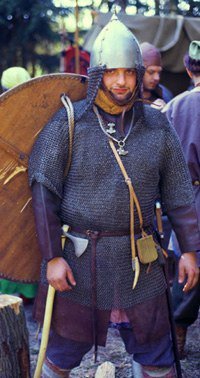 В прошлом занимался военно-исторической реконструкцией эпохи викингов. Очень хорошо знает историю и умеет интересно ее рассказть. Умеет биться на мечах, стрелять из всяких пистолетов и ружий разных эпох. Специализация его была-реконструктор тканей.(он еще и крестиком вышивать умеет ) в связи с этим опытом связал моим малышам 2 пары слингобус)))