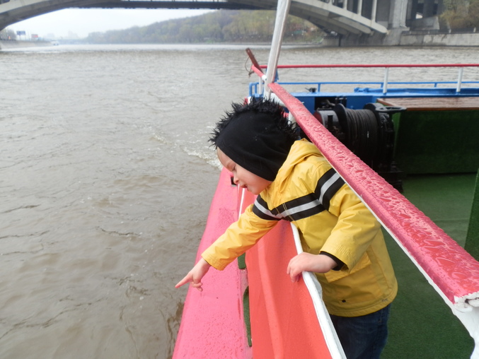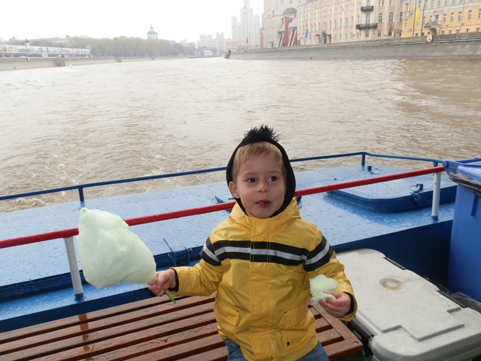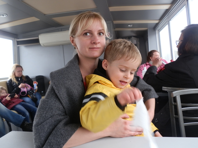 А,4-го мая,не смотря на погоду(но нам повезло-первая половина дня была без дождя)мы катались на теплоходе!Кайф!!!Я обожаю вообще любой транспорт,а теплоходы и самолеты в особенности!Вода-Воздух-Дорога это моя Жизнь и Стихии!Влад тоже наслаждается движением и всяческими перемещениями на транспорте(явно мое)