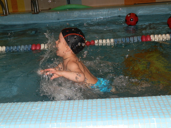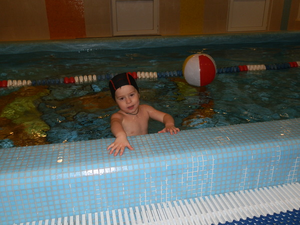 Уже два месяца как Владькин ходит в бассейн!Он вообще,товарищ-водоплавающий и поэтому от занятий в восторге и с нетерпением ждет следующего!Получается 4 занятия-2 раза частные и 2 раза в саду!Обожает нырять(и просто,и за игрушками),плавать держась за доску и на спине,прыгать с бортика!!Тренер у нас очень внимательная,отзывчатая,но жутко строгая девушка Ольга лет 35!Взаимопонимание они нашли довольно быстро и теперь души друг в друге не чают,хотя Ольга частенько и ругает его за шалости