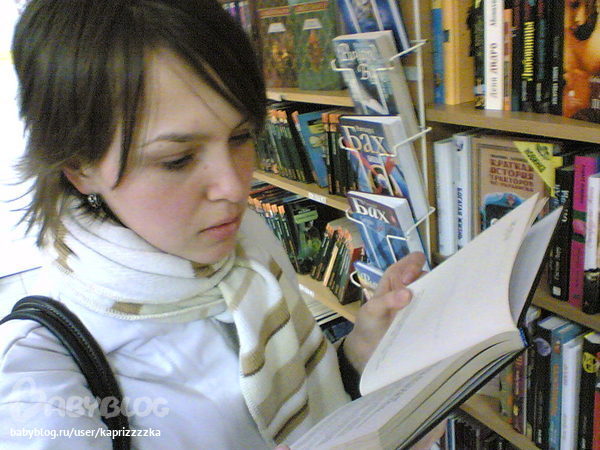 Это я любимая за любимым занятием - читаю книжки в книжном магазине :)) потом выписывала название, скачивала в инете и читала с телефона :))