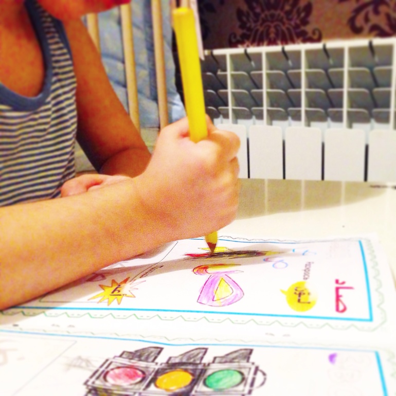 вот держит карандаш только так, говорит что ему так удобно. я пыталась научить правильно, но может я нетак объясняю, он напрягает все пальцы и мышцы на лице заодно, из всех сил пыхтит и карандащ его не слушается в руках- то выпадает, либо просто ему так очень тяжело писать... а таким способом получается лучше, и ему легко.