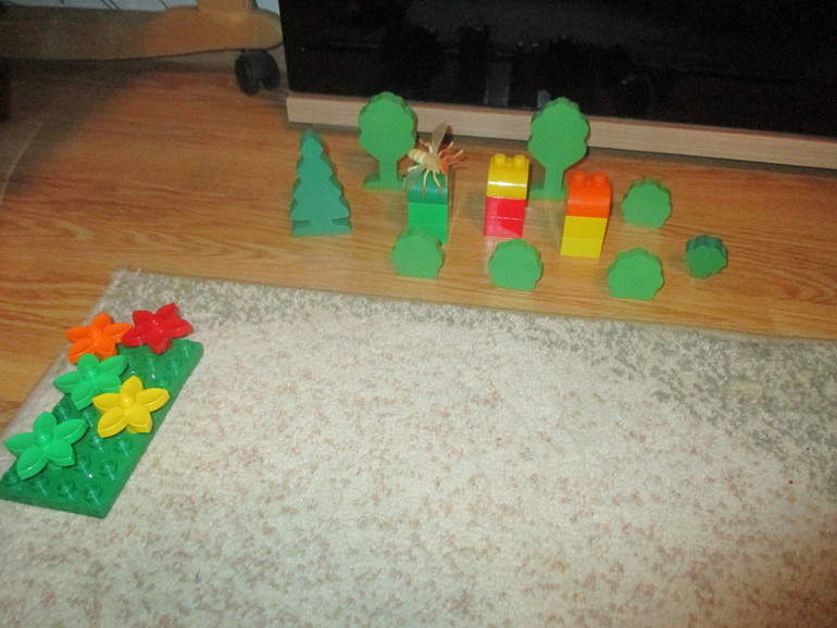 Проиграли жизнь пчел по сезонам - весной построили из Лего ульи для пчел,привезли их в сад, летом пчелки работали - летали с цветка на цветок,собирая душистый нектар,а осенью мы собрали мед и увезли ульи в омшаник.