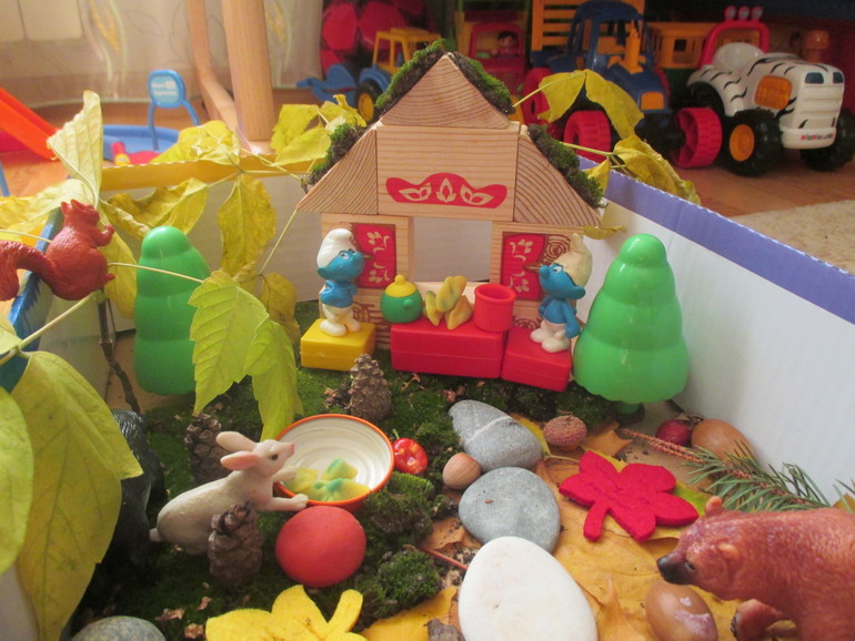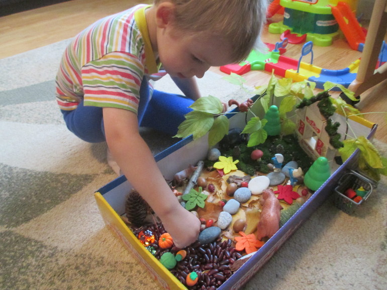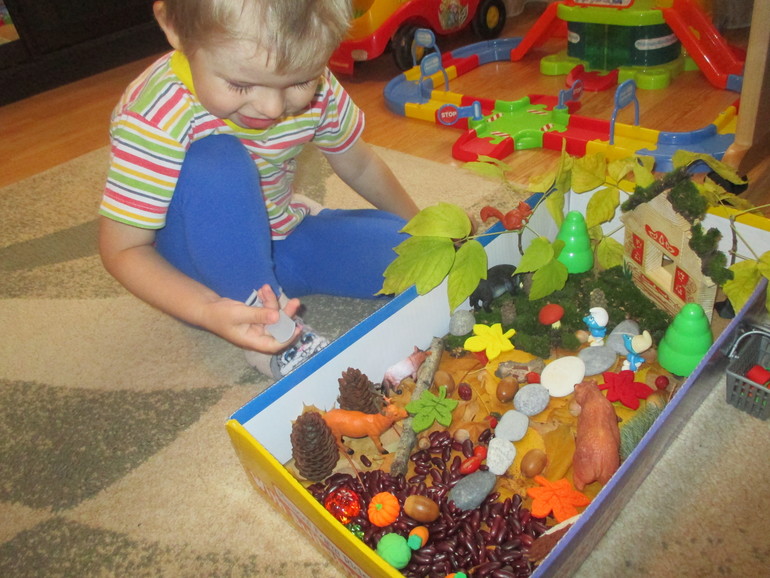 В осенней сенсорной коробке разыграли сказку "Осенний листочек".