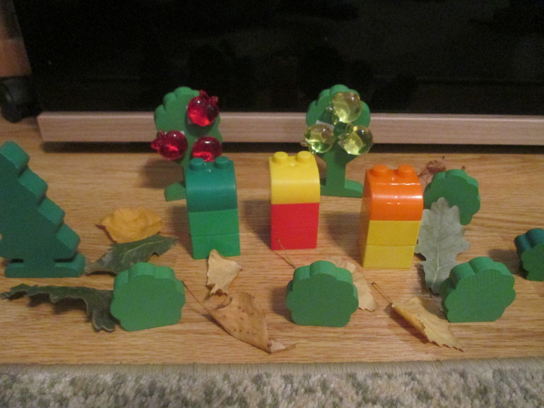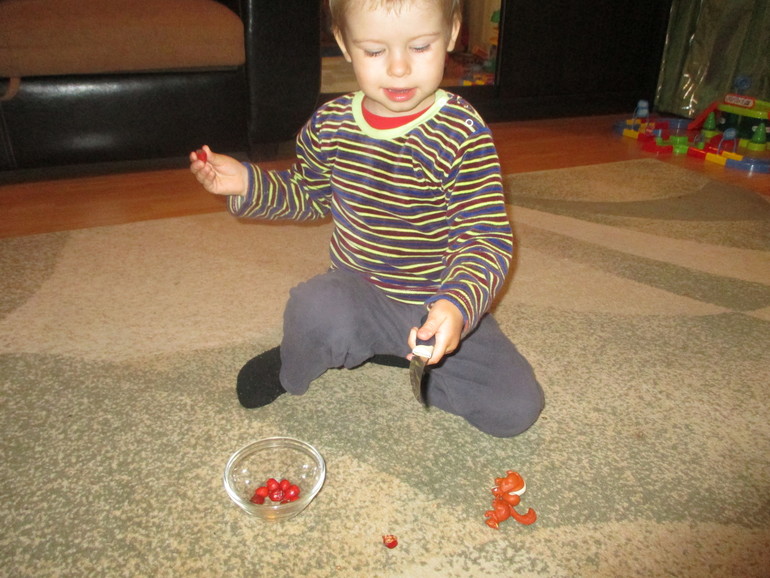 Складывали белочкам плоды шиповника в дупла,делили поровну,считали.