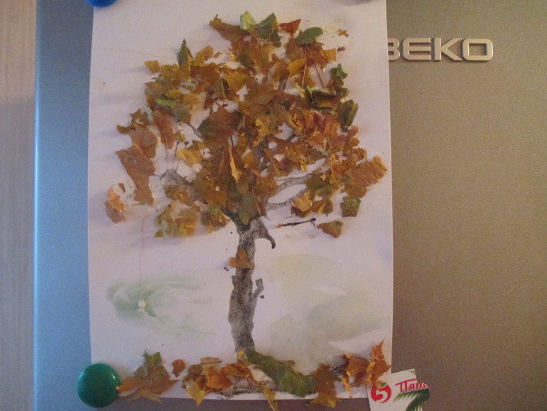 Гуляя на улице,любовались красотой осенней природы,нашли березы,собрали листочки.