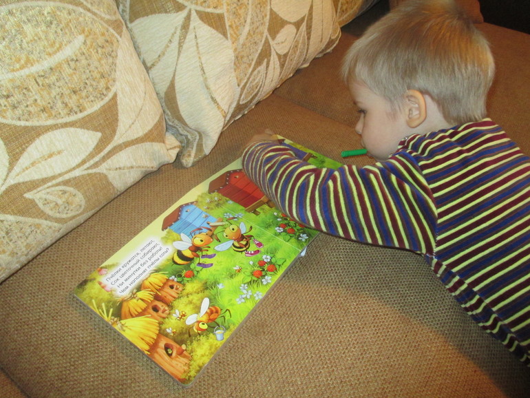 Рисовали соты - Сережа был в восторге,посадили туда пчелку.