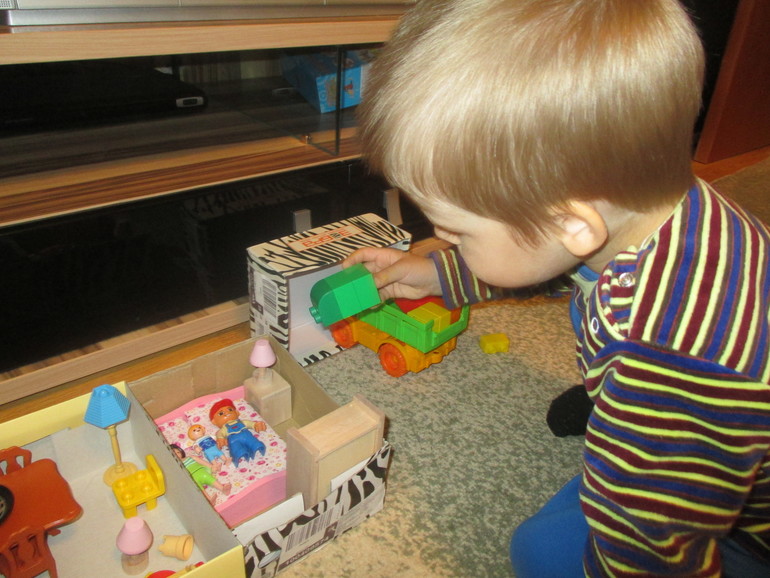 Поиграли в волшебный мешочек-Сережа все пытался все заглянуть в мешок).