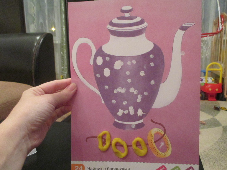 Творчество - чай с баранками - украсили чайник (рисование ватными палочками), лепили баранки из пластилина.