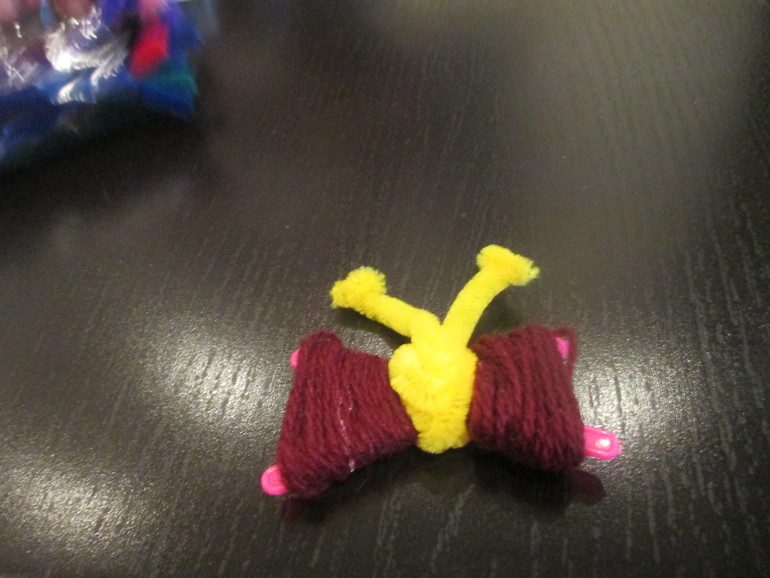 Ну и сделали бабочку из шерстяных ниток.