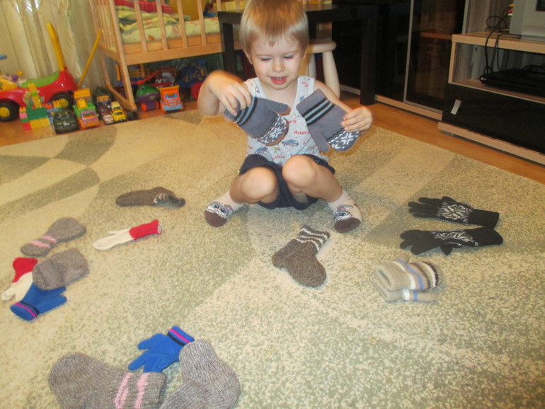 Подбирали пару шерстяным носочкам и варежкам.