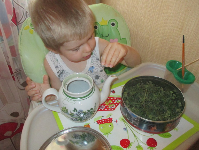И сами захотели почаевничать. Сначала заваривали чай с мятой и шиповником, добавили лимон,имбирь, попутно все понюхали).