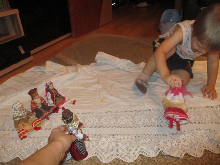 Поиграли с куклами в народных костюмах - танцевали под задорные народные наигрыши, уложили спать.
