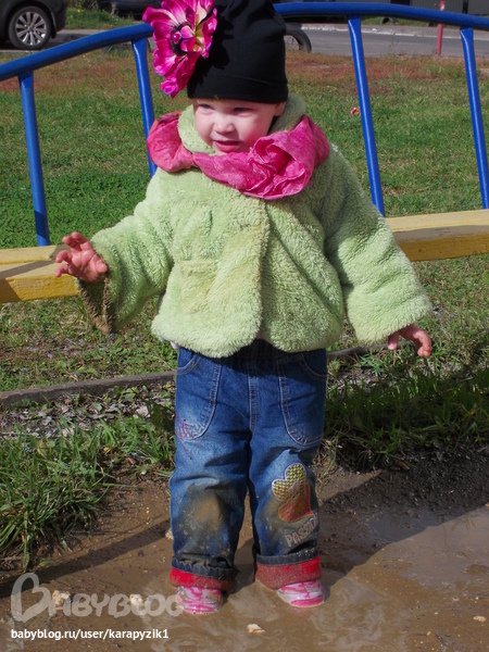 На прогулке Саша нашла лужу... лужа была одна....ей было грустно и холодно....и наша добрая девочка решила лужу пожалеть... и вот что из этого вышло: