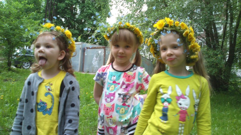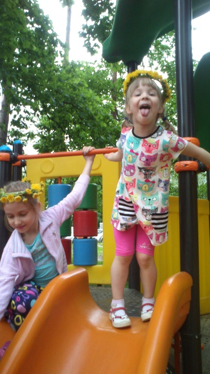Спасибо, Юльк ,за комплимент! У нас Саня всех на венки подбила-я отнекивалась-но она не сдалась и всех заразила!!Молодец!!!А платье нам папа в Линдексе в Химках купил! у них , вообще, часто с кошками детская одежда бывает! Еще юбка и лосины!!! все с кошками!! Вообще это туника-не платье-но Саня говорит-платье! Хи-хи!Теперь это любимое!!!