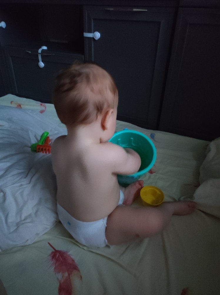 видимо ещё одна умелка, из-за которой мы потеряли сон в последние дни... Ева научилась всё доставать из ведра и складывать туда обратно. там всякие формочки для лепки куличиков из песка, лопатка, грабли и лейка. вот уже полчаса вместо сна сидим и собираем детальки 😊