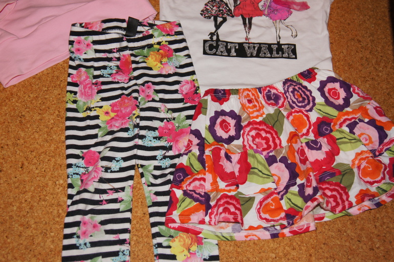кофта туника с киской +платье фирмы Gymboree, лосины и футболка фирмы Acoola Kids,юбочка фирмы крейзи.За все 3000т. ( пакет одежды по стоимости в магазине одной куртки фирмы Зара)