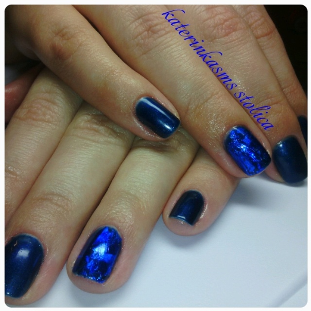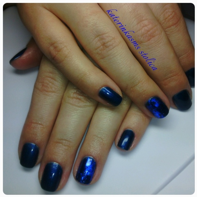 Вот такой маникюр я только что сделала для очаровательной Елены! С золотой лункой, но только на двух ноготках)