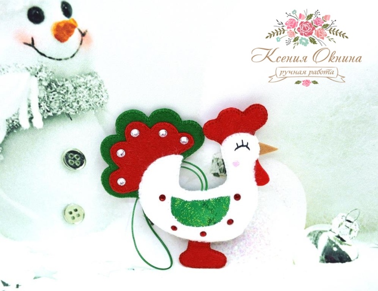 В туловище Петушка вшит неодимовый магнит, поэтому его можно прикрепить на холодильник, а за петельку можно подвесить на елку.