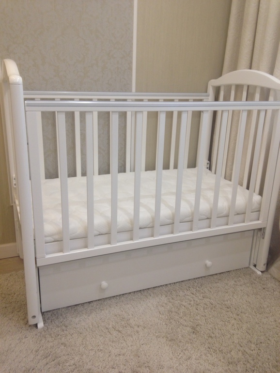Продаю детскую кроватку с маятниковым механизмом Можга (Красная звезда). Цвет белый. Большой выдвижной ящик,2 уровня высоты,на бортиках силиконовые накладки, боковая стенка опускается,можно полностью снять. На спинке есть маленькие сколы (ребенок точил зубы,на фото видны), а в целом состояние хорошее. Пользовались только первые месяцы,потом ребенок стал спать с нами,поэтому кровать в основном стояла.Цена 6000 руб. м.Пражская
