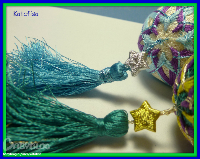 Ну ты Катюш даешь, такую красоту сотворила!!! И кисточки, и звездочки!!! А цвета восхитительные - темнозеленый с золотом оч благородно!!!