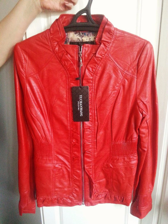 Куртка из эко-кожи на теплую весну/осень, на тонкой подкладке, красного цвета с рюшами ,воротничком- стойкой . Абсолютно новая! 46 р-р. Мне маловата. Самовывоз 5 мин на транспорте от м шаболовская/тульская