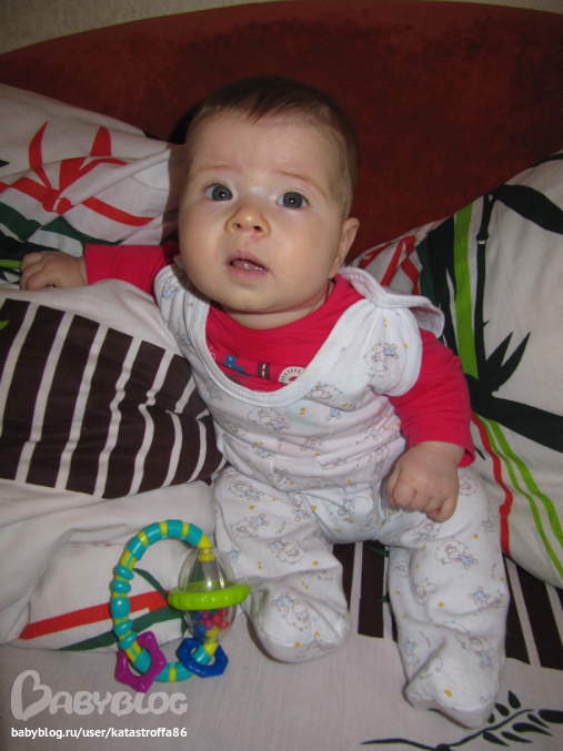 Красавица!!! А у нас такое же пятнышко под носиком и такой же жираф :) Жираф любимая игрушка Андрея, любитель побить его и лапы отгрызть :)