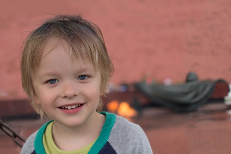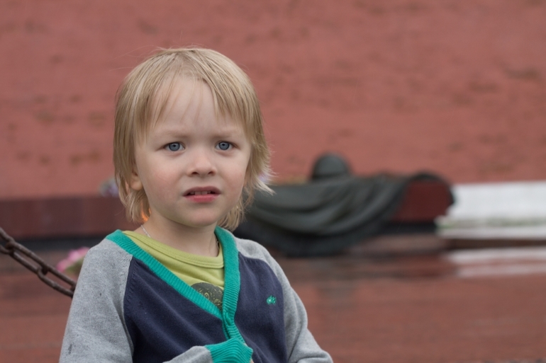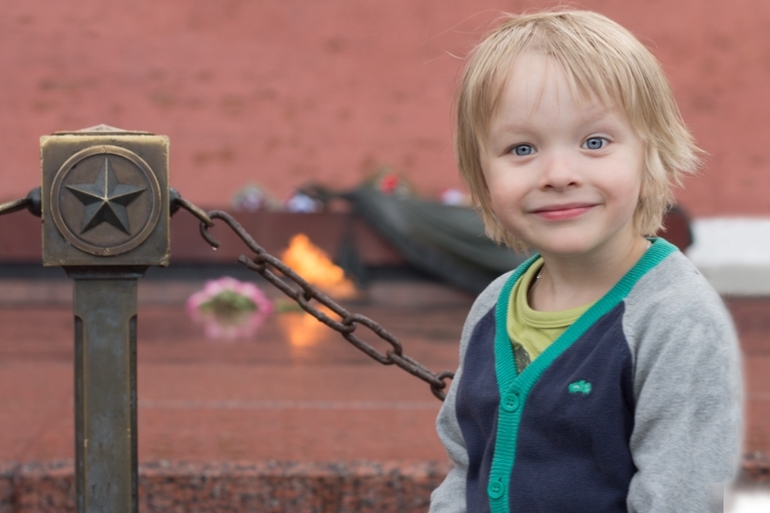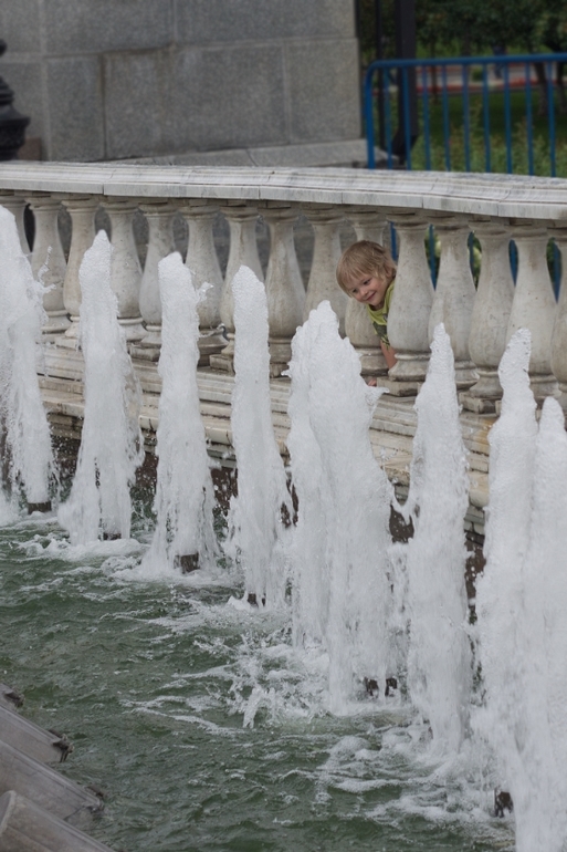 Зашли в Александровский сад. Ване очень понравились фонтаны, статуи из сказок, вечный огонь и солдаты. Пошел дождик. Мы под зонтиком гуляли.