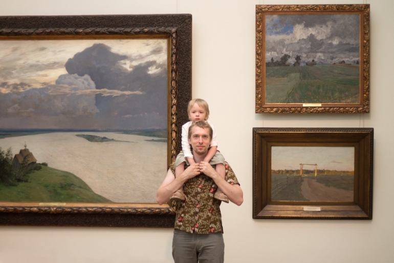 Случайно посетили Третьяковскую галерею. Ехали покататься на лодочках в Царицино. Когда приехали в Москву начался ливень, решили пойти в Третьяковку.