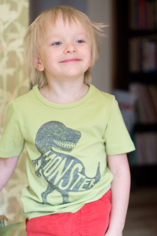 Перед садом закупились в Мазекее. Ребенок уже сам выбирает себе вещи. Кое-что купили по его просьбе. Ваня позирует в обновках: