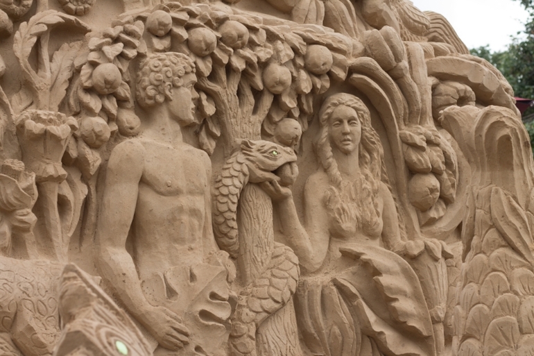Погуляли по Красной площади. Там этим летом райские кущи, Адам и Ева: