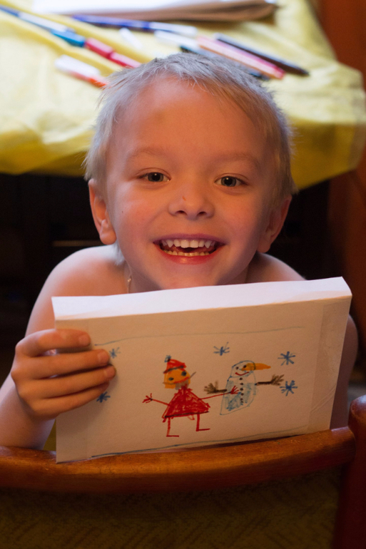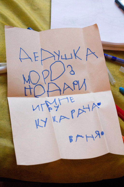 Потом мы писали письмо Деду Морозу. Спрятали его в морозилку. Ваня весь день бегал проверял исчезло ли письмо. К утру оно исчезло.